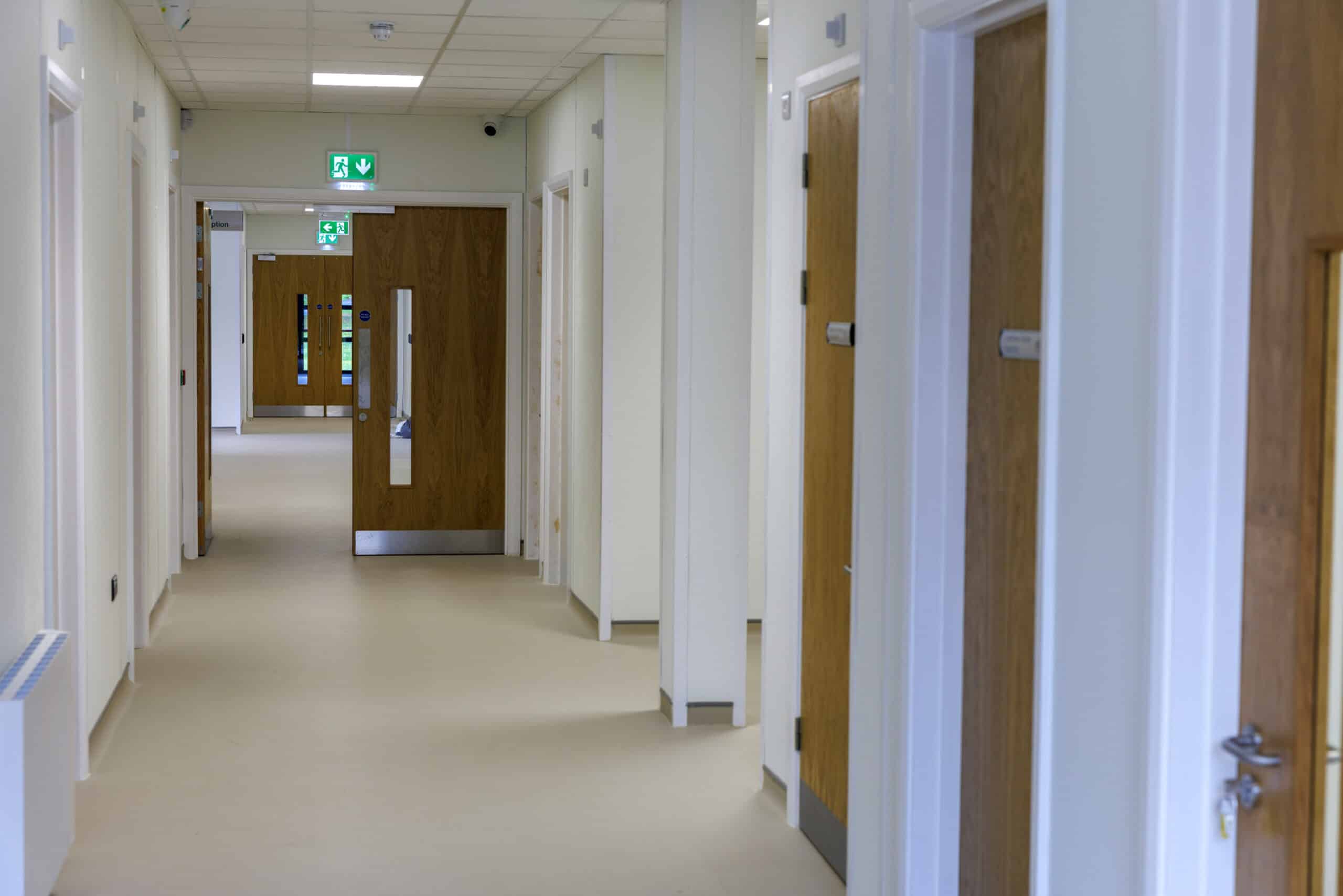 The building features a sizeable entrance foyer, five clinical rooms, two rehabilitation gyms with a bi-folding wall system, three podiatry rooms, five diagnostic rooms (including respiratory diagnostics), eight administration offices, an education room, a quiet room, a canteen room, welfare facilities (including shower/toilet rooms), a sluice room, and a communications room.
