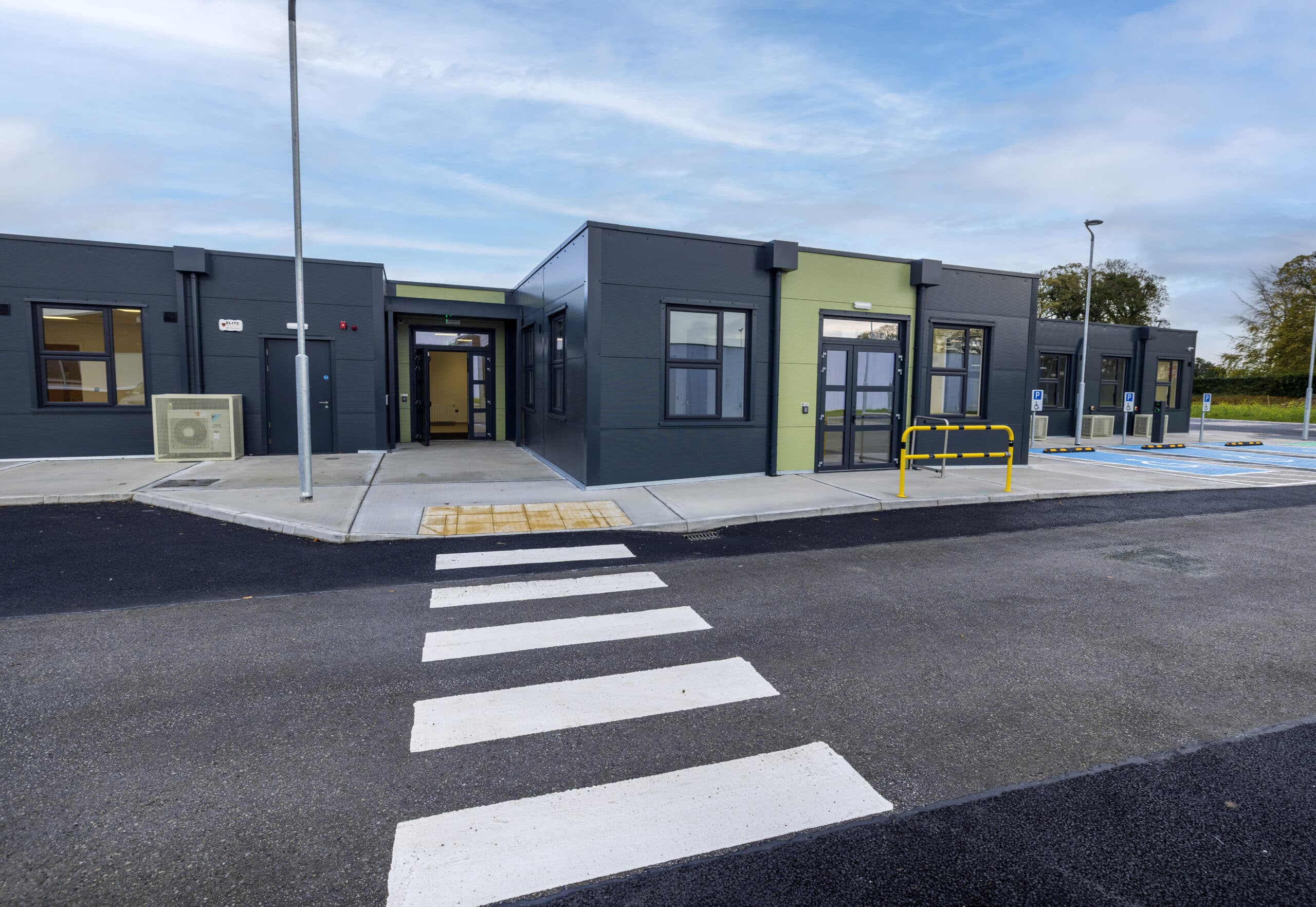 Through this collaborative approach, we delivered a 787 m², A2 BER-rated 3D volumetric modular building and associated infrastructure, purpose-built to support this essential healthcare service. The building is fully compliant with Building Control Amendment Regulations (BCAR) and can be used as a permanent building solution. It consists of 32 modules manufactured in eight weeks and installed over three days. We served as the single point of delivery, managing everything from design, manufacturing and siteworks to installation, fit-out, and handover.
